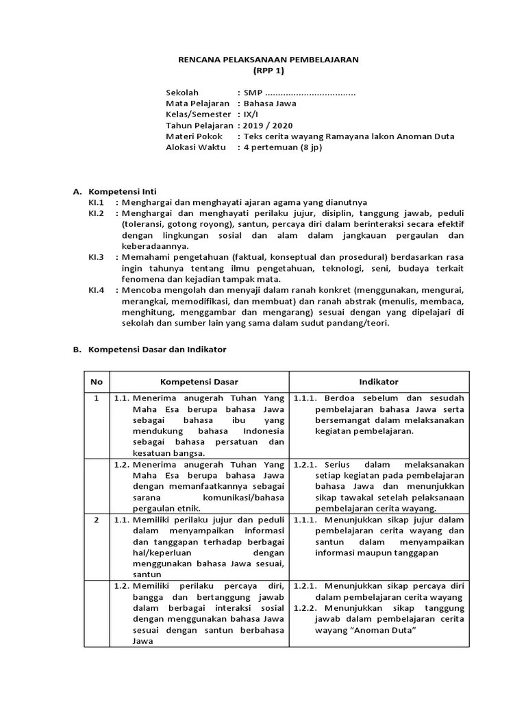 Unduh rpp kompetensi dasar memahami isi cerita ramayana lakon anoman duta.